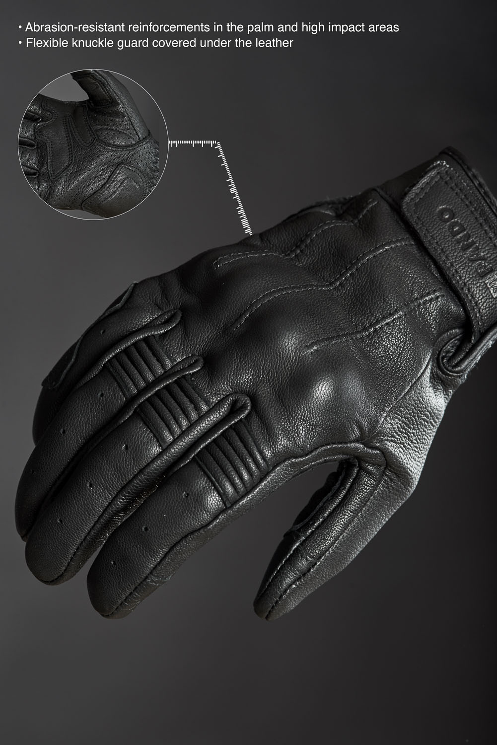 For additional protection, the Ivy Black summer leather motorcycle gloves have abrasion-resistant reinforcements in high-impact areas. There's a flexible knuckle guard under the leather and soft padding on the palm. This has all been added to enhance rider safety.